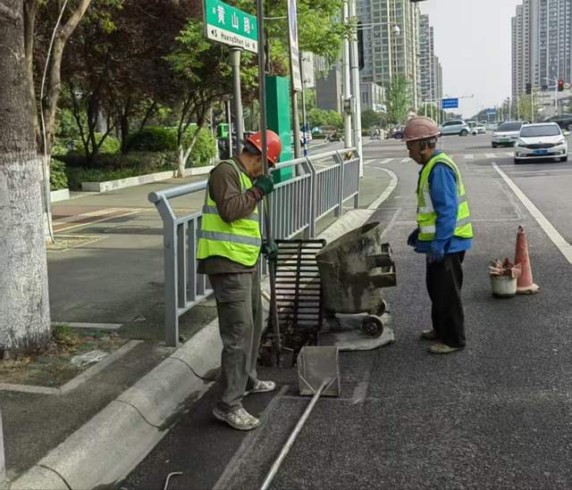 市政人员清挖排水窨井