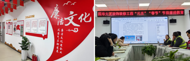 中华建设网讯 (通讯员 白金玲)中建七局建装公司装饰幕墙分公司(以下简称分公司)开展一系列形式新颖、内容鲜活的廉洁文化活动,让廉洁教育从文件走向文化,从会场深入现场,为企业高质量发展注入源源不断的廉动力。 一墙一廊皆课堂 文化阵地活起来。分公司纪委紧密围绕年度重点新开工项目,落实一项目一方案廉洁文化阵地...